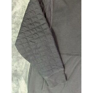 * Design: Solid black with quilted sleeves and embroidered chest logo