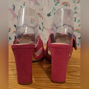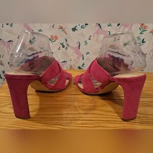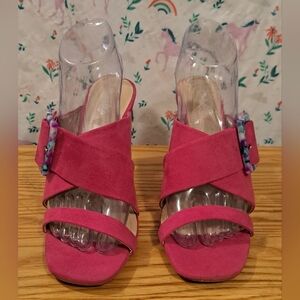 Y2K Charles David Gleam Vegan Neon Pink Chunky Boho Heel Block Sandal Shoe SZ 8M