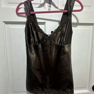Y2K Charlotte Russe Dark Brown Satin Top Size Medium 2000s Fairycore
