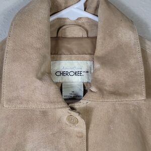 Y2K Cherokee Womens 100% Leather Jacket Size M Tan Suede Button 90s Vintage Bike