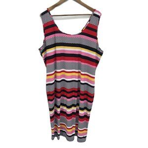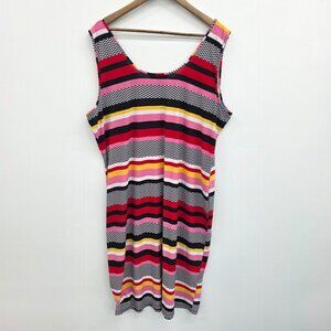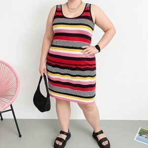 Y2K Chevron Stripe Bodycon Tank Dress Pink Red Black Yellow Stretch Knit 3X