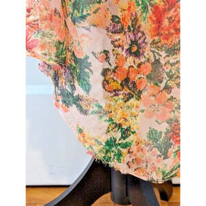 Y2K Chiffon Tapestry Slip Dress M Peach Floral Draped Pleats Hi-Lo Cottagecore