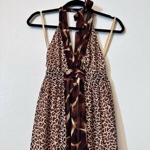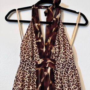 Y2K Chiffon MODA International Women Maxi Dress Long Halter Neck Animal Print M