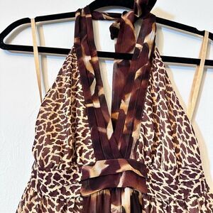 Y2K Chiffon MODA International Womens Maxi Dress Long Halter Neck Animal Print Empire Waist M