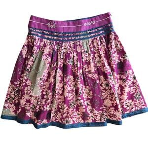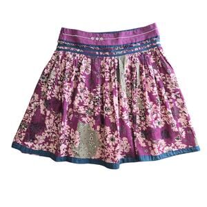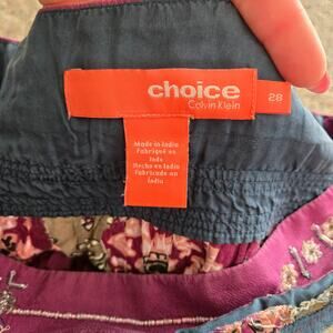 Purple floral mixed print full skirt with blue trim and beaded waist band by Choice Calvin Klein. This line was sold from 2004-2006 ish. Rare and so perfectly Y2K vibes. Low rise fit with side zipper. Excellent condition!
