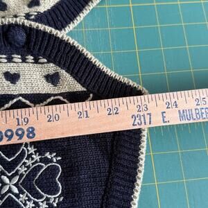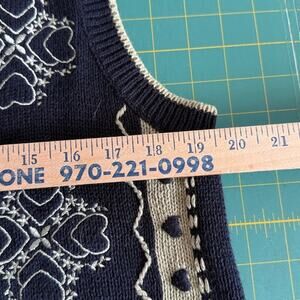Y2K Christopher Banks Women's Navy Button Sweater Vest Embroidered Hearts sz L