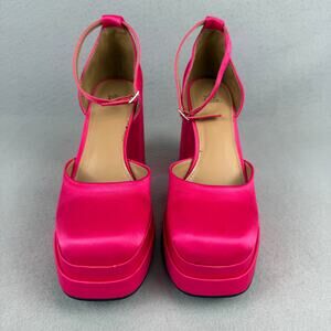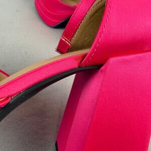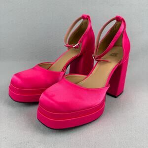 Y2K Chunky Block Heel Platform Shoes Pink Satin Mary Jane Strappy Women’s 7.5