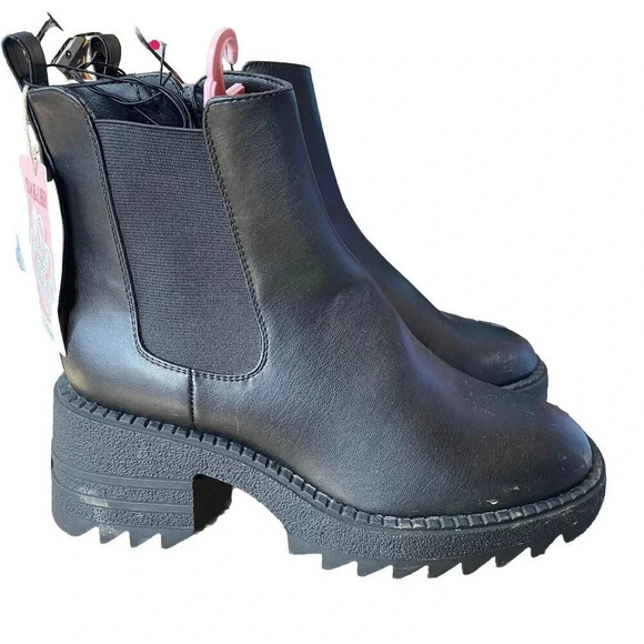 Y2K Chunky Heels Sam/Libby Chelsea Ankle Black Faux Leather Boot Womens 8.5 Goth
