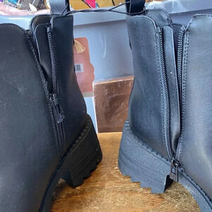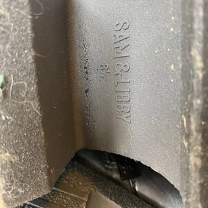 Elevate your shoe game with these Y2K chunky heels from Sam/Libby. The ankle boots feature a round toe and pull-on closure, making them perfect for travel, workwear, or casual occasions. The black faux leather upper material is accented with a tab at the back of the heel and lined with fabric for added comfort. The boots have a mid-height platform heel, measuring between 2-2.9 inches, and a rubber outsole for durability.