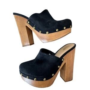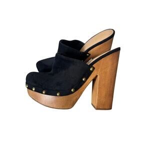 Y2K Chunky Heels Women’s Size 7 Black Faux Suede Clog Shoes Studded Platform 90s