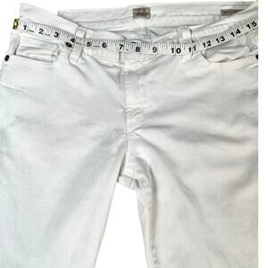 Pre-owned in good condition. No major flaws—some light general wear typical for white jeans. See all photos for details and measurements.