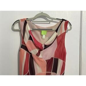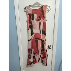 Y2K Citrine Dress Size 8 Pink Abstract Drape Neck Ruffle Hem Country Club Preppy, great condition.