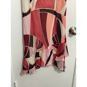 Y2K Citrine Dress Size 8 Pink Abstract Drape Neck Ruffle Hem Country Club Preppy