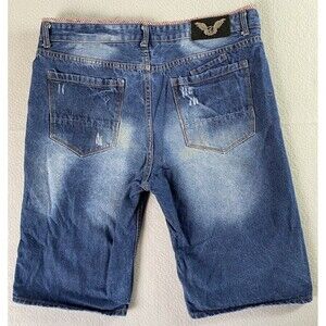 Y2K City Ink Jeans Shorts Mens 40x14 Blue Distressed Whisker Relaxed Tag 38*