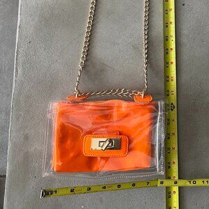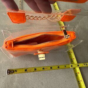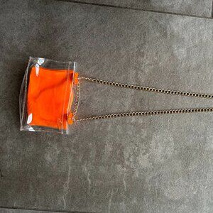 Y2K Clear Jelly Bag Purse With Gold Chain Strap and Hardware - Clear and Orange