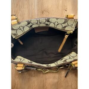 This Y2K Coach 10508 Hampton Signature Satchel Bag and Wristlet from 2007 is an iconic Y2K Coach style and design! Featuring Signature canvas in Khaki/Doe with leather trim, this set is just as stylish and sought after today as it was almost 20 years ago. If you love Y2K vintage Coach design and quality, this is a must have for your collection!