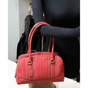 This Y2K Coach 10526 Hamilton Pebble Leather Satchel Bag from 2006 is such a great color! Featuring pebble leather in Coral with brass hardware, this bag is just as stylish today as it was almost twenty years ago and the perfect size for all of your essentials. Adding a scarf or bag charm would look adorable on this style. If you are looking for a retro, Y2K bag with a pop of color, this bag is perfect and would be a great addition to your Coach collection!