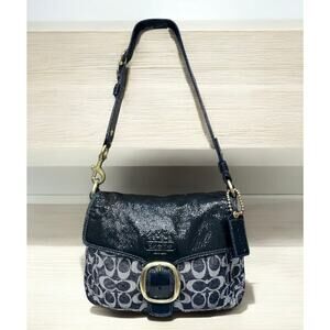This Y2K Coach 12572 Signature Denim Bleecker Flap Bag and Matching Large Wallet from 2008 is just fabulous! Featuring Signature Denim in blue and grey with blue patent leather trim and large brass hardware, Coach denim bags are trending now and this set is just as stylish today as it was almost 20 years ago and hard to find as a matched set. If you love vintage, Y2K Coach design and quality, this is a must have for your collection!