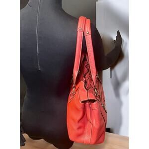 This Y2K Coach 13160 Penelope Pebble Leather Satchel Bag from 2008 is such a classic Coach silhouette and style! Featuring Pebble Leather in Coral with gathered top detail and side pleating, this large bag is super preppy and functional with more than enough storage sections for all of your items. If you love vintage, preppy, classic Coach, this is a must have for your collection!