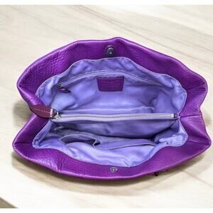 This Coach 14426 Penelope Pebble Leather Satchel Bag from 2009 is such a classic Coach style and a great color! Featuring pebble leather in the Grape colorway with silver hardware, this bag is both super stylish and functional with three internal sections for storage. If you love Y2K, preppy Coach design and quality, this is a must have for your collection!