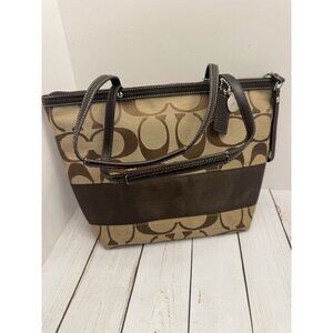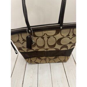 Y2K Coach Brown Signature C Canvas Leather Straps Tote F13548 13x10x4” EUC
