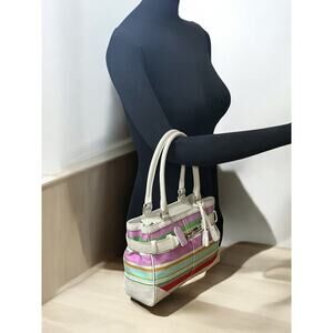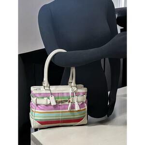 Y2K Coach F10704 Hamptons Stripe Satchel Bag & Large Wristlet