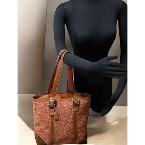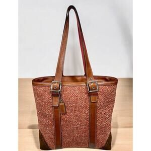Y2K Coach F11216 Scaro Herringbone Tweed Tote Bag & Matching Wristlet