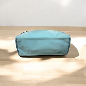 This Y2K Coach F11993 Hamptons Sateen Satchel Bag from 2008 is just adorable! Featuring turquoise blue in sateen with brown leather trim and canvas straps, this bag is not only stylish, but also functional with external and internal storage for all of your items. If you are looking for a retro, Y2K bag with a pop of color, this Hamptons would be perfect and a great addition to your Coach collection!
