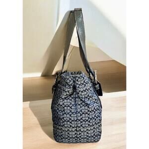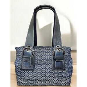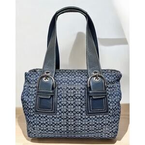 This Y2K Coach F12310 Soho Mini Signature Satchel Bag from 2008 is an instantly recognizable Coach design and style! Featuring Mini Signature Jacquard in blue with blue/gray leather trim and iconic Soho buckle detail, this smaller satchel is just as stylish today as it was almost 20 years ago. If you love Y2K, preppy, vintage Coach styles, this is a must have for your collection!