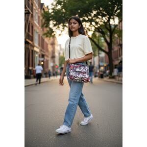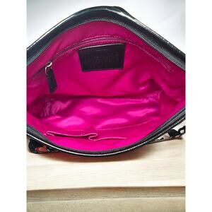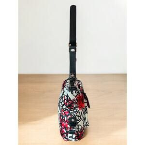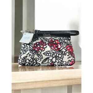This Y2K Coach F16864 Poppy Daisy Floral Graffiti Crossbody Bag and New With Tags F45352 pleated wristlet from 2011 is such a fun, bright Coach set! Featuring white sateen with black, red and pink flowers with Coach graffiti script, this bag is just big enough for all of your items and has an adjustable strap for shoulder or crossbody wear. If you love the colorful Y2K Poppy styles, you need this set in your collection!