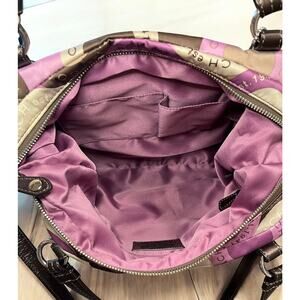This Y2K Coach F17582 Alexandra Snap Head Print Convertible Bag and Wristlet from 2011 is such a cute set! Featuring sateen with the snap head print and metallic leather trim, this set is not only stylish, it is functional with two attached straps for a variety of ways to wear. If you love the style, quality and glam look of Y2K Coach, then this set is a must have for your collection!