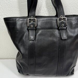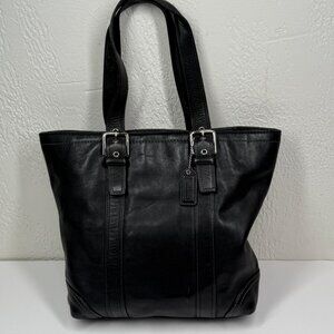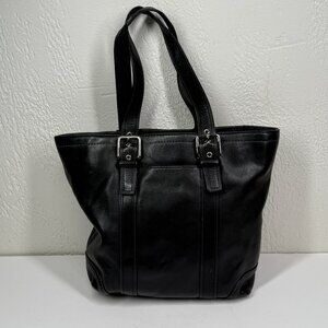 Y2K Coach Hampton Leather Buckle Tote Black Classic Carryall Silver Hardware