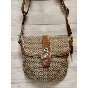 This Y2K Coach Mini Signature Jacquard Convertible Bag is such a classic Coach look and style! Featuring Mini Signature Jacquard in khaki/brown with British Tan leather trim and buckle closure detail, this bag is super stylish and functional with a convertible strap for shoulder or crossbody wear. If you love the preppy, vintage, Y2K look, then this is perfect Coach bag for you!