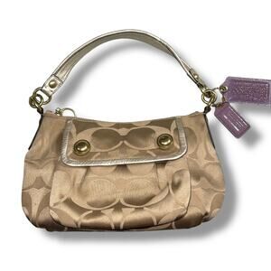 Y2K Coach Poppy Signature Jacquard Sateen Groovy Hobo Bag Crossbody Gold