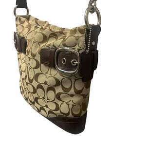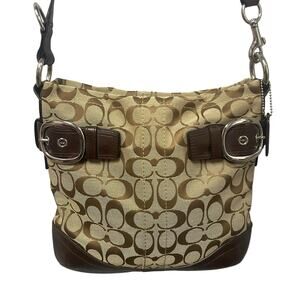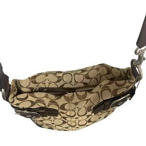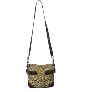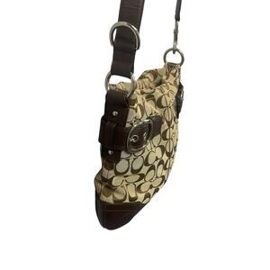 Y2K Coach Signature Logo Print Canvas Beige Brown Leather Trim Crossbody Handbag