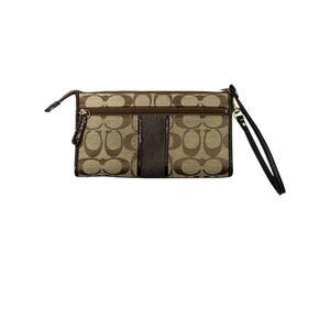 Coach, Wristlet, Wallet, Long Wallet, Signature C, Signature Stripe, Monogram, Canvas, Brown, Tan, Khaki, Patent Leather, Glitter, Classic, Designer, Clutch, Pouch, Organizer, Ladies, Women's, Y2K Style, Legacy, Logo, Minimalist, Everyday, Zip Around