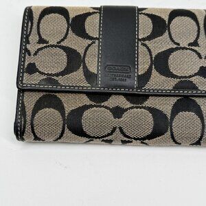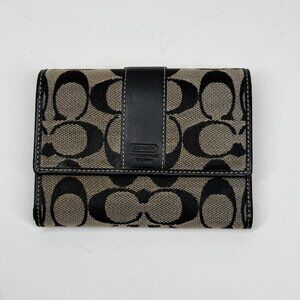 Y2K Coach Signature Trifold Wallet Black Monogram Canvas Leather Trim
