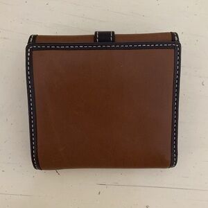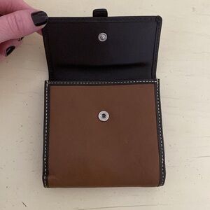 Y2K Coach Small Trifold Wallet Brown Signature Leather With Buckle Detail