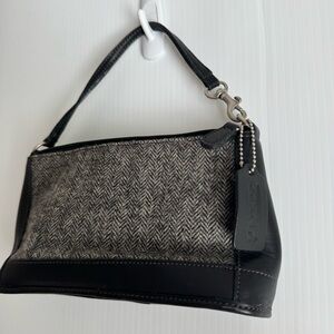 Y2K Coach brand Bleecker tweed herringbone wool and leather Black &Gray Mini Bag