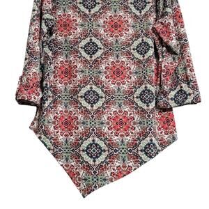 Y2K Cocomo Floral Print Asymmetrical Hem Quarter Sleeves Top Size Large Petite
