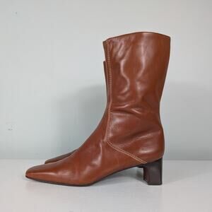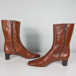 Y2K Cole Haan Boots 8 Brown Kitten Heel Square Toe Zip Calf Ankle 90s Leather