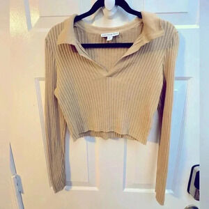 And Now This Collared, Ribbed CropTop, 90’s inspired. Size medium, great pre-owned condition. Fitted crop top in light weight, rib-knit fabric. Open collar with long, close-fitting sleeves. Slim fit, beige light tan color.