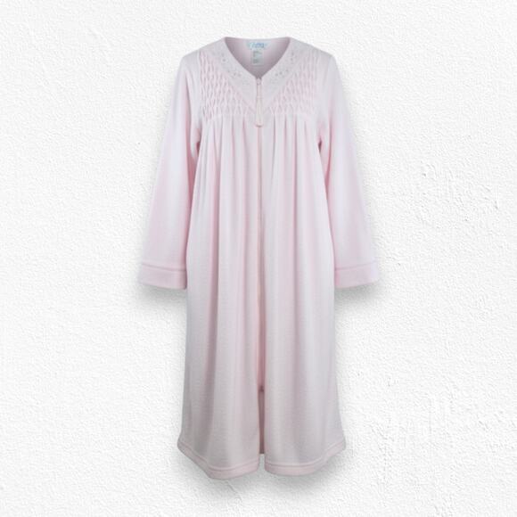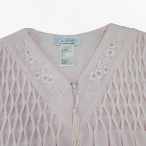 Y2K Collette Pink Fleece Zip Housecoat Robe Floral Embroidery Mid Calf Medium