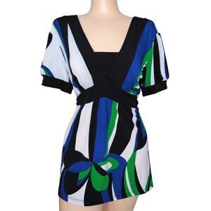 Y2K Colorblock Babydoll Top Small Stretch Back Cutout Statement Abstract Print