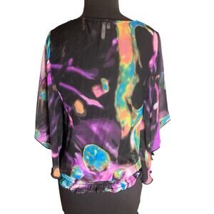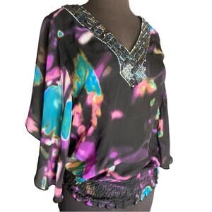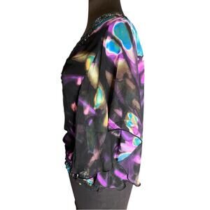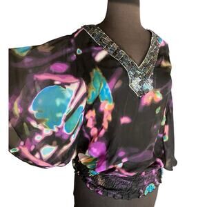 Y2K Colorful Semi Sheer Flowy Bedazzled Fairy Going Out Blouse S Boho Artsy