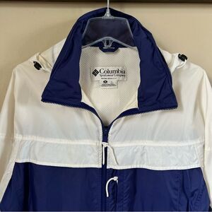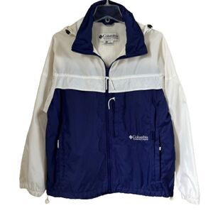 Y2K Columbia Retro Rain Wind White Purple Hooded Full Zip Coat Jacket -Medium