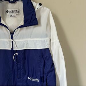 Y2K Columbia Retro Rain Wind White Purple Hooded Cost Jacket