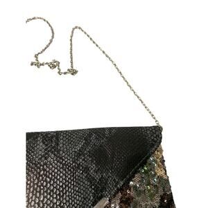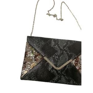 Y2K Convertible Envelop Clutch Shoulderbag Faux Snakeskin Sequin