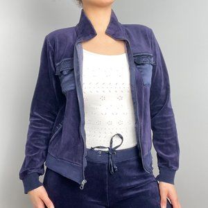 Y2K Coolwear USA Navy Blue Velour Satin Tracksuit