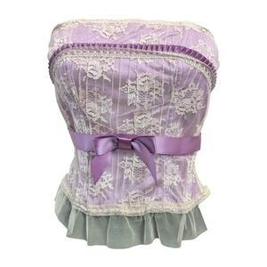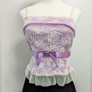 Y2K Coquette Delicates Dainty Ruffle Bow Lace Bustier